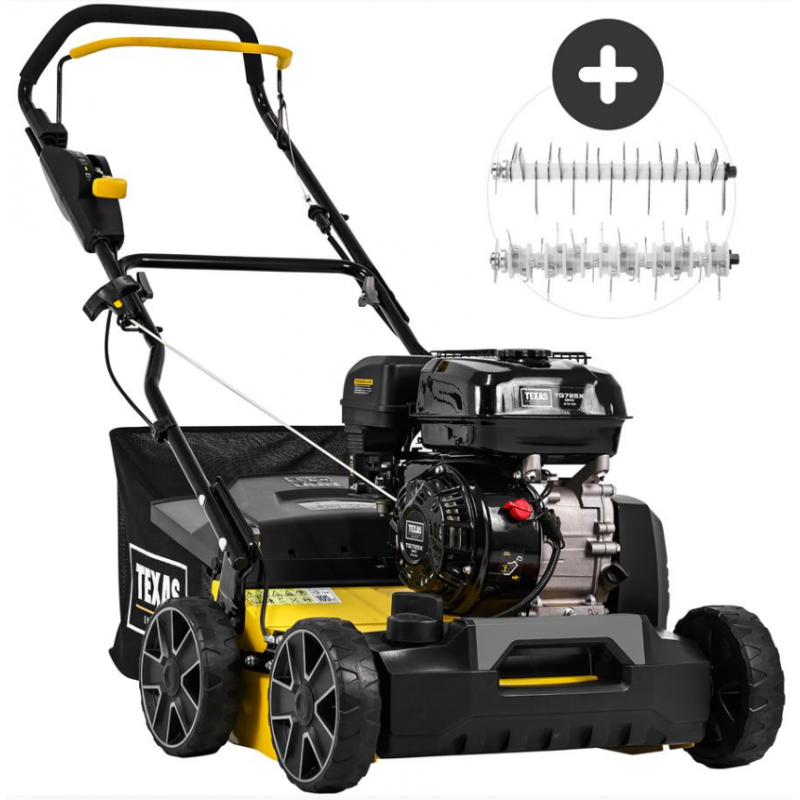 Výkonný benzínový vertikutátor TEXAS Pro Cut 411TG 2v1 - odstraňovač machu a prevzdušňovač trávnika dokáže dokonale okysličiť váš trávnik a odstrániť mach, keďže s týmto modelom získate pružinový aj nožový valec. Pružinový valec obsahuje 24 pružín, vďaka čomu je ideálny na efektívne odstraňovanie machu a pomáha udržiavať trávnik bez machu. Okrem toho dostanete nožový valec s 18 nožmi, čím sa tento stroj zmení na výkonný vertikálny prevzdušňovač poháňaný benzínom.Pro Cut 411TG ponúka centrálne nastavenie výšky, čo vám umožňuje plynule nastaviť pracovnú hĺbku medzi -15 mm a -3 mm pre hĺbkovú a dôkladnú starostlivosť o trávnik. S pracovnou šírkou 40 cm pokrýva tento stroj veľkú plochu, vďaka čomu je vhodný pre veľké trávniky alebo plochy s výrazným nahromadením machu. Či už používate pružinový valec alebo nožový valec, benzínový vertikutátor TEXAS Pro Cut 411TG túto prácu zvládne efektívne.Pro Cut 411TG je vybavený výkonným motorom s objemom 212 cm3 s výkonom 4,0 kW a rýchlosťou až 3 600 otáčok za minútu (bez záťaže), ktorý poskytuje dostatok výkonu na zvládnutie aj veľkých plôch machu na vašom trávniku. Môžete jazdiť s nožovým valcom s 18 nožmi, ktorý efektívne vertikálne kosí a okysličuje váš trávnik, alebo pružinovým valcom s 24 pružinami, ktorý efektívne vytrháva mach - oba sú súčasťou balenia.Jeho oceľová rezný štít zaisťuje odolnosť a s hmotnosťou 37,5 kg ide o solídny a spoľahlivý stroj. Nastaviteľná rukoväť s dvomi nastaveniami výšky zaisťuje ergonomické ovládanie, zatiaľ čo pohodlná predná zdvíhacia rukoväť uľahčuje prepravu.Pro Cut 411TG obsahuje aj 45-litrový zberný vak, ktorý zjednodušuje zber machu a nečistôt počas používania. Alternatívne ho môžete používať aj bez zberného vaku keďže prevzdušňovač trávnika má zadné vyhadzovanie. To vám umožní pozbierať všetok mach, až keď prejdete celým trávnikom. Vďaka tomuto je ideálnym strojom pre veľké aj malé trávniky.Poznámky Stroj je dodávaný bez oleja. Motor je prednastavený tak, aby bežal na maximálny plyn (plné otáčky za minútu) pre optimálnu prevádzku, aj keď sa v príručke k motoru spomína ovládanie plynu. Príručka sa týka viacerých modelov motorov, ale ovládanie plynu nie je pre tento konkrétny stroj k dispozícii.Charakteristika a technické údaje:Výrobca motora: Texas Model motora: TG725X Typ motora: 4 takt Objem zdvihu: 212 ccm Objem palivovej nádrže: 3,6 litra Výkon: 4,0 kW pri 3600 ot./min. Počet valcov: 1 Štartér: Ťahací / Spätný ráz Pracovná šírka: 40 cm Pracovná hĺbka: -3 až -15 mm Zadné vyhadzovanie: Áno Prevody dopredu: 1 Veľkosť kolies: 8 palcov Výškové nastavenie: Centrálne Štít: Oceľ Nože: 18 ks Hlučnosť: 98 dB(A) Motorový olej: SAE 30 Kapacita motorového oleja: 0,6 litra Objem zberača: 45 litrov Riadidlá: Nastaviteľné Úroveň vibrácií: 3,56 m/s2 Dĺžka balenia: 57 cm Šírka balenia: 64 cm Výška balenia: 67 cm Čistá hmotnosť: 37,5 kg Záruka na motor: 3 roky TEXAS je 100% dánska rodinná firma, ktorá vyrába záhradnú techniku od roku 1960. Všetko to začalo so záhradnými kultivátormi, no dnes sa sortiment rozšíril na všetky typy motorových záhradných strojov (elektrický, batériový a benzínový pohon). Hrdé tradície sa začali v továrni v Dánskom Odense, kde dodnes sídli. TEXAS vlastní 2 továrne, ktoré vyrábajú väčšinu našich záhradných strojov. To dáva plnú kontrolu nad vývojom, kvalitou a kontrolou, ako aj zodpovednú a modernú výrobu.