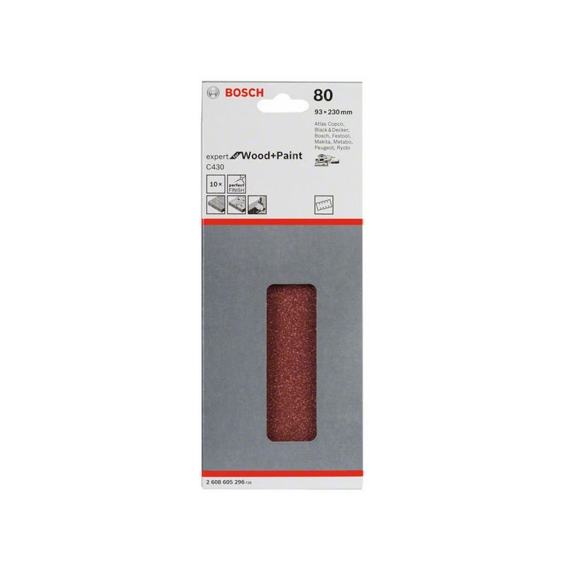 Bezchybné povrchy vďaka jedinečnému spôsobu perforovania s použitím matrice S najmodernejšou dokončovacou technikou sú zaručené čisté rezy hrán a precízne perforované otvory v rovnako vysokej kvalite Bez úbytku kvality, s čistými a temer hladkými otvormi, bez vylamovania zŕn S vynikajúcou štruktúrou povrchu špeciálnym flexovaním - tzv. lineárny proces multi-flexovania Flexovanie: narušenie celistvého obrazu brúsnych zŕn na dosiahnutie rovnomernej elasticity celého brusiva - veľmi dôležitá vlastnosť najmä pri listoch a zvitkoch brusiva určených pre ručné brúsenie Brúsne listy majú strmeňové upínanie Vhodné na brúsenie s vibračnými brúskami značky Bosch,