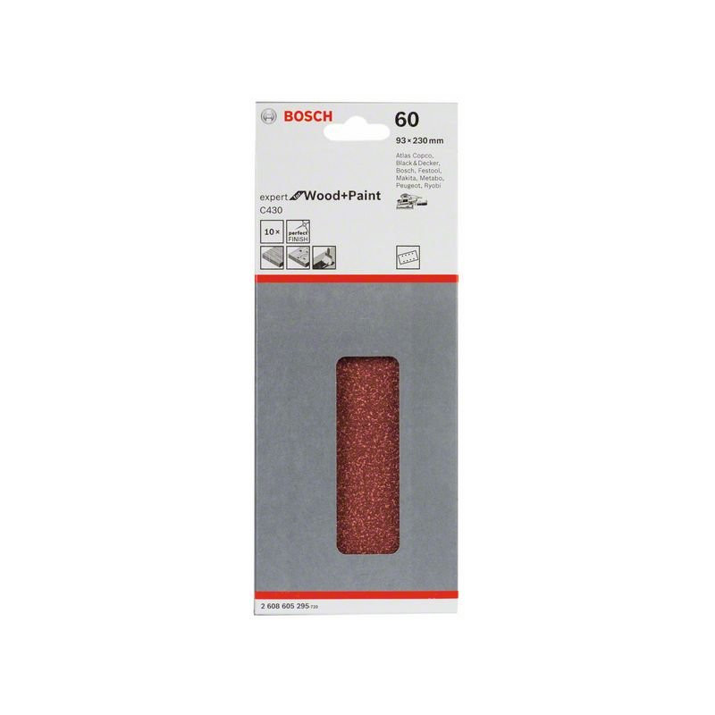 Bezchybné povrchy vďaka jedinečnému spôsobu perforovania s použitím matrice S najmodernejšou dokončovacou technikou sú zaručené čisté rezy hrán a precízne perforované otvory v rovnako vysokej kvalite Bez úbytku kvality, s čistými a temer hladkými otvormi, bez vylamovania zŕn S vynikajúcou štruktúrou povrchu špeciálnym flexovaním - tzv. lineárny proces multi-flexovania Flexovanie: narušenie celistvého obrazu brúsnych zŕn na dosiahnutie rovnomernej elasticity celého brusiva - veľmi dôležitá vlastnosť najmä pri listoch a zvitkoch brusiva určených pre ručné brúsenie Brúsne listy majú strmeňové upínanie Vhodné na brúsenie s vibračnými brúskami značky Bosch,