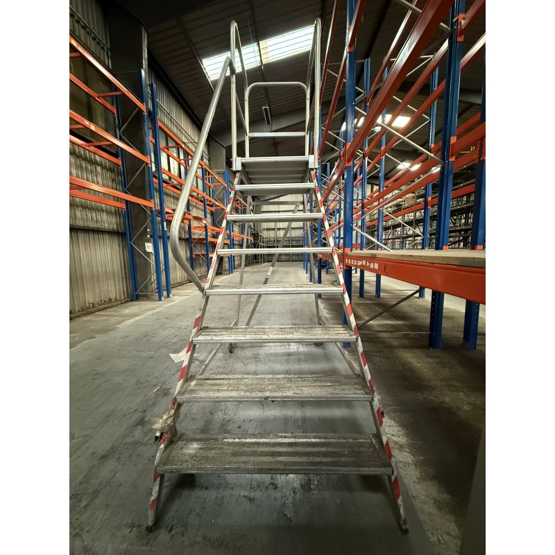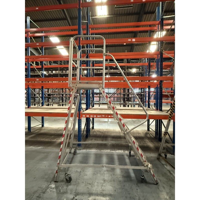 Predstavujeme vám profesionálny hliníkový pojazdný rebrík EUROLINE s bezpečnou pracovnou plošinou, ktorý je ideálnym pomocníkom pre údržbárske práce, sklady, výrobu či obchody. Tento použitý, no plne funkčný rebrík s 8 priečkami a výškou plošiny 1,9 m kombinuje vysokú stabilitu s nízkou hmotnosťou a výnimočnou mobilitou vďaka kvalitným riadiacim kolesám.