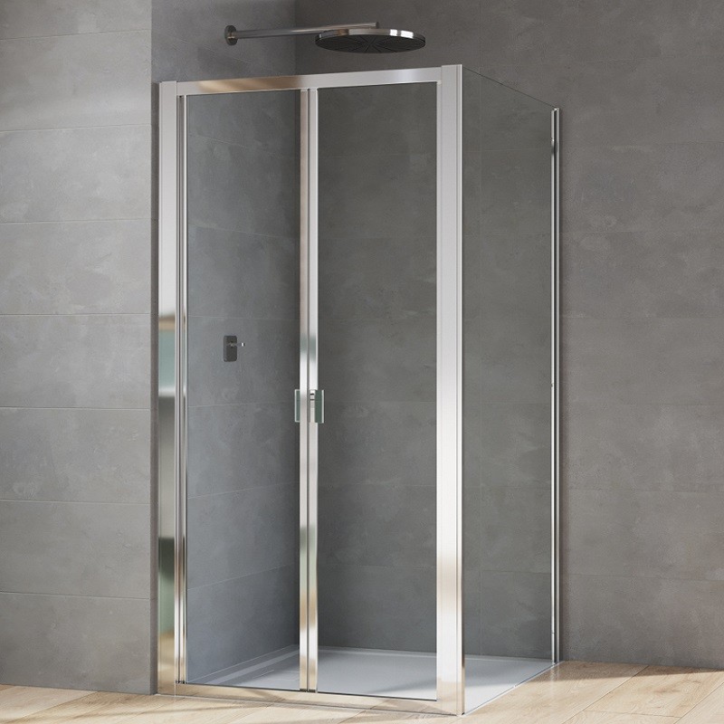 Číre transparentné sklo opticky zväčšuje priestor kúpeľne a vytvára pocit vzdušnosti. Zalamovacie dvere šetria miesto v kúpeľni, pretože nevyžadujú priestor na otvorenie von. Univerzálna montáž umožňuje inštaláciu na ľavú alebo pravú stranu podľa vašich potrieb.