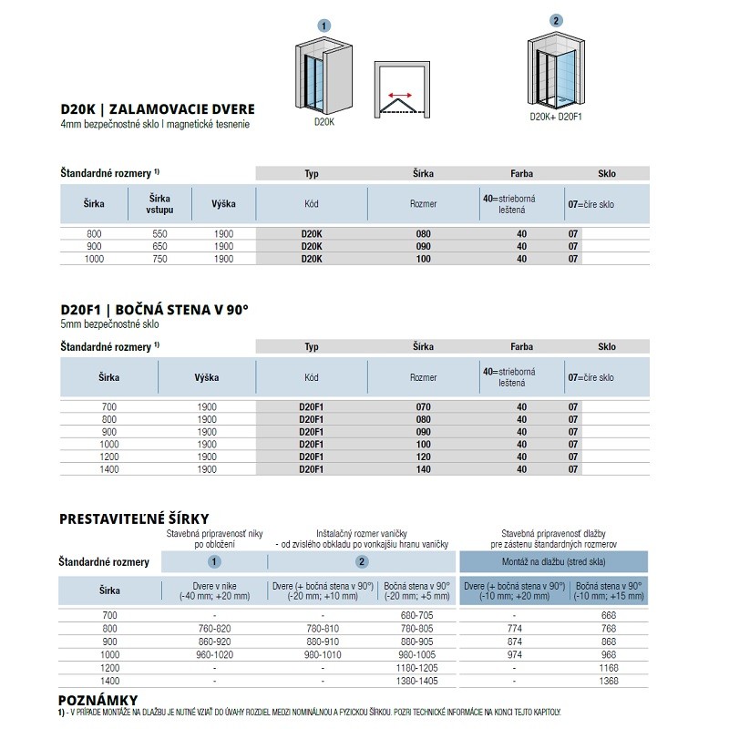 | Použitie sprchových dverí | do niky alebo kombinácia s bočnou stenou |