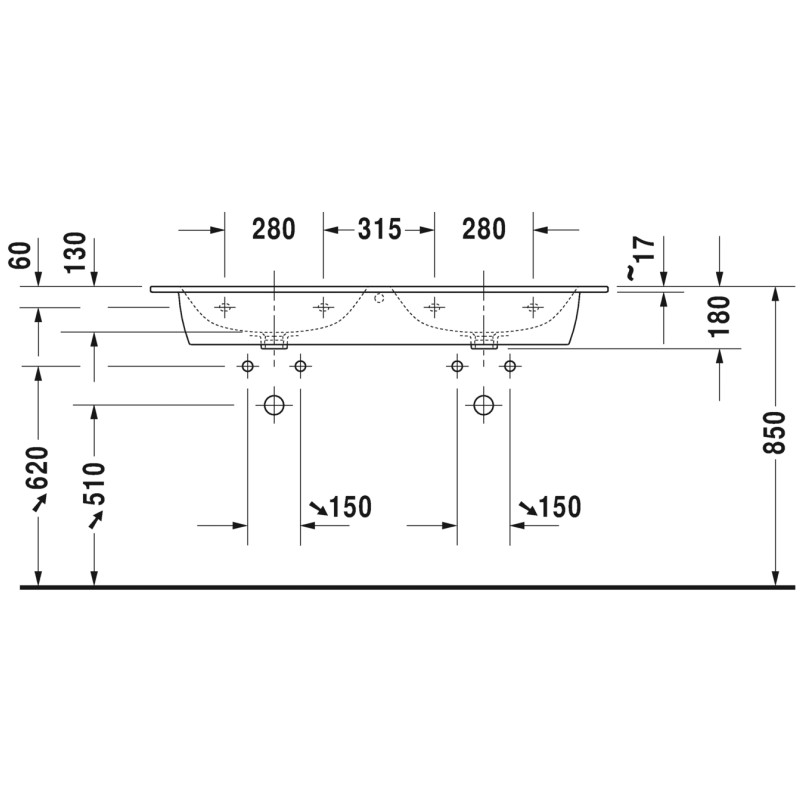 Dvojumývadlo ME by Starck ponúka šírku 130 cm a hĺbku 49 cm, čo poskytuje dostatok priestoru pre pohodlné používanie dvoma osobami súčasne. Je vybavené prepadom, ktorý zabraňuje nežiaducemu pretečeniu vody, a otvorom pre batériu, čo umožňuje flexibilnú inštaláciu.