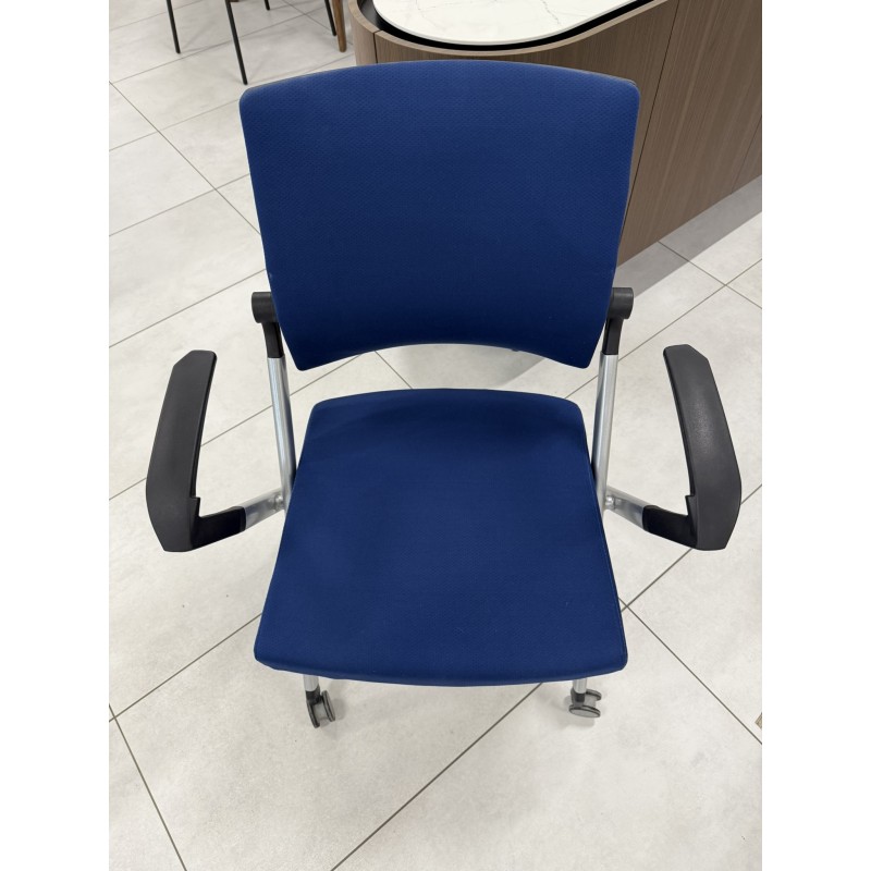 Stav: používané, sú na nich drobné nedostatkyPopis a parametre - moderná konferenčná stolička s vysokou variabilitou použitia - stoličky je možné spojovať vedľa seba do radu bez použitia ďalšieho materiálu - podpierky rúk je možné podľa potreby vysunúť, alebo ponechať zasunuté - kovová podnož v striebornom laku - výplň čalúnenia je z kvalitnej vysokohustotnej peny - sedadlo a operadlo je čalúnené do pružnej odolnej látky s odolnosťou 100 000 cyklov - stolička je stohovateľná - stolička disponuje kolieskami - nosnosť 150 kgOdolná kovová konštrukcia Jednou zo základných súčastí stoličky je pevná kovová konštrukcia, ktorá dodáva stoličke vysokú stabilitu, odolnosť voči opotrebovaniu a dlhú životnosť. Kovová konštrukcia je nenáročná na údržbu. Vďaka svojmu modernému dizajnu skvele zapadne do akéhokoľvek interiéru. Nosnosť stoličky je 150 kg.Pohodlie pre Vaše ruky Stolička je vybavená praktickými opierkami rúk, ktoré Vám poskytnú potrebnú oporu aj pri dlhšom sedení. Zlepšujú pozíciu tela a znižujú únavu. Opierky rúk pri konferenčnej/jedálenskej stoličke oceníte aj pri sedení pri stole, kedy si o opierky môžete pohodlne oprieť ruky.Stohovateľná - šetrí priestor pri skladovaní Využívate stoličky na rôzne udalosti či sezónne akcie a je pre Vás dôležitá ich skladnosť? Stoličky môžete jednoducho stohovať (skladať) na seba. Stohovateľnosť stoličiek Vám uľahčí skladovanie aj upratovanie.