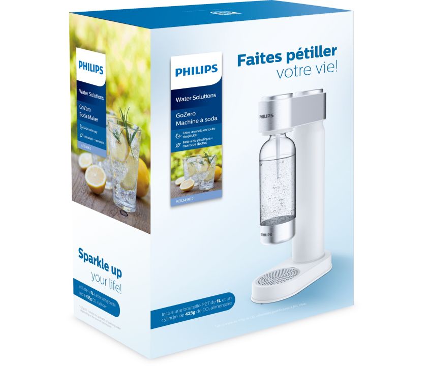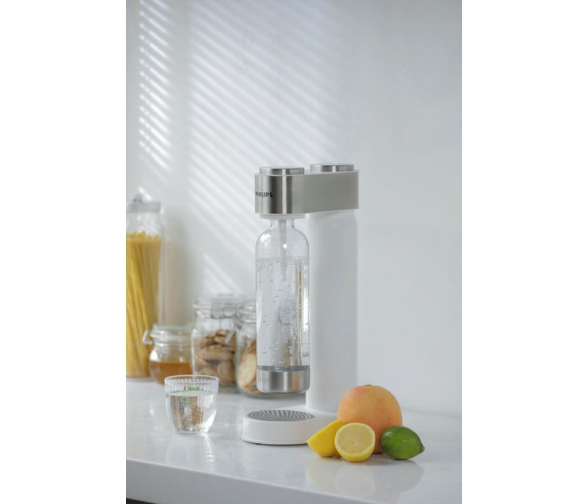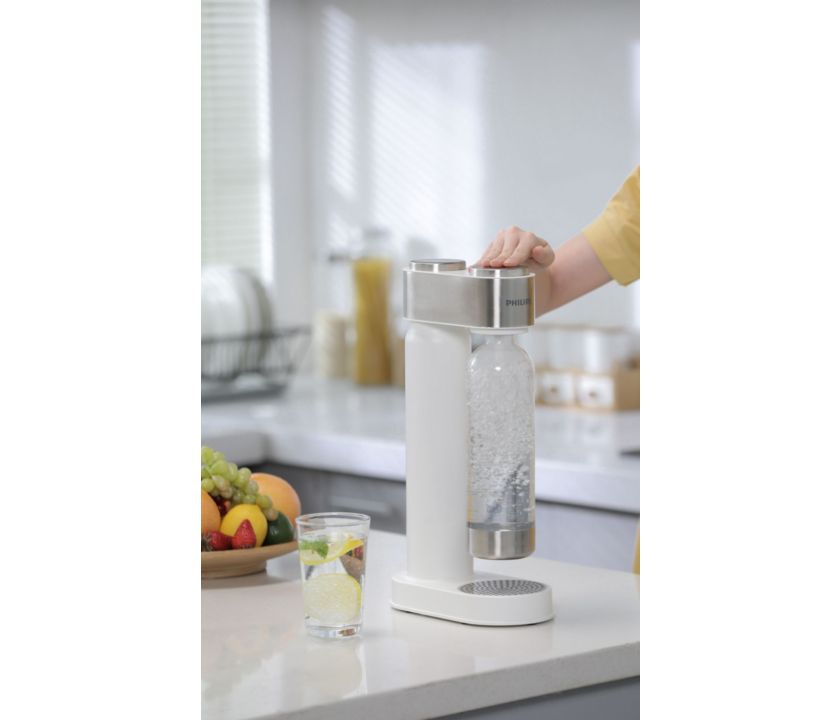 Kedykoľvek si doprajte osviežujúcu perlivú vodu vďakasódy Philips GoZero. Na výrobu vám stačia 3 jednoduché kroky – naplniť, otočiť a stlačiť! Elegantný dizajn doplnený brúsenou nehrdzavejúcou oceľou bez problémov zapadne do vašej kuchyne či domova.