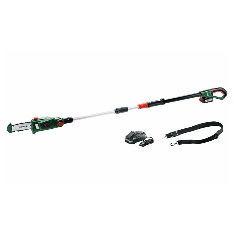 Akumulátorová teleskopická prerezávacia píla UniversalChainPole 18 Ideálne náradie na prerezávanie ťažko prístupných vetví. Možnosť výškového nastavenia 210 - 260cm Ľahké prerezávanie vetví stromov zo zeme bez rebríka vďaka teleskopickej rukoväti a otočnej hlave Nepretržitý rezný výkon bez poškodenia stromov Ergonomická, vyvážená a ľahká konštrukcia menej zaťažuje ramená a plecia Jeden akumulátor na všetko náradie pre domácich majstrov a záhradné náradie v rámci systému akumulátorov 18 V Li-ion Power for ALL Čip Syneon – inteligentne riadená energia pri každom projekte Kryt špičky a nárazový klin umožňujú lepšie ovládanie pri prerezávaní a podrezávaní Indikátor hladiny oleja a automatické mazanie reťaze zabraňujú prevádzke prerezávacej píly „nasucho“ 1 akumulátor PBA 18V 2,5Ah W-B Nabíjačka AL 1830 CVUžívateľské výhody Ideálne na prerezávanie ťažko prístupných vetiev Ľahké prerezávanie konárov na stromoch zo zeme bez použitia rebríka vďaka teleskopickej tyči a otočnej hlave Nepretržitý rezný výkon bez poškodzovania stromov Ergonomická, vyvážená a ľahká bez nadbytočného namáhania paží a ramien Jeden akumulátor na všetky kutilské aj záhradné náradia zo systému Power for ALL s 18 V lítium-iónovým akumulátorom Syneon Chip - Inteligentná kontrola energie pre každý projekt Chránič špice a zubová opierka pre lepšiu kontrolu nad rezaným konárov i okolím Indikátor hladiny oleja a automatické premazávanie reťaze chráni odvetvovaciu pílu pred vysychaním automatické mazanie Ochrana lišty