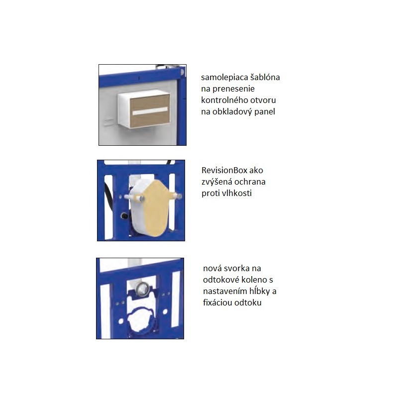 Modul je vybavený RevisionBox - inšpekčnou krabicou, ktorá poskytuje efektívnejšiu ochranu proti vlhkosti a jednoduchý prístup k armatúram. Obsahuje aj chrániče na pripojenie sprchovacieho WC a elektronického splachovania.