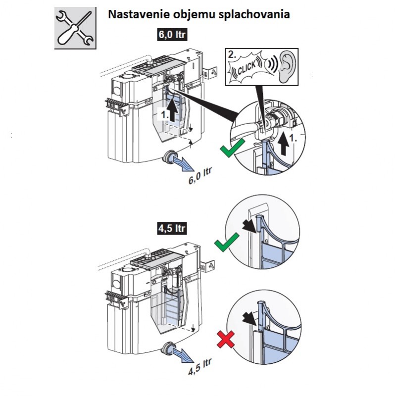 | Ovládanie tlačítka | na dve splachovania |