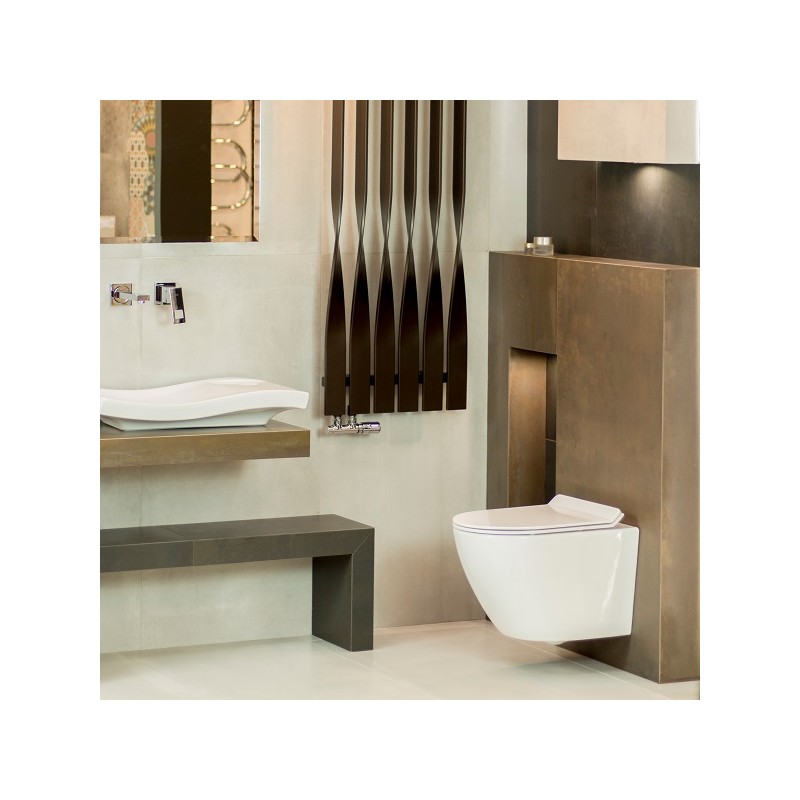 WC misa SOGO SLIM má polooválny štíhly dizajn. Jeho štíhla tenká doska so zdvihnutou zadnou časťou vám umožní dosiahnuť na ťažko dostupné miesta misky. Technológia splachovania RIM+ bez okraja zaisťuje efektívne preplachovanie a odstránenie nežiaducich nečistôt a usadenín. Tvrdé sedadlo z duroplastu s antibakteriálnym povlakom pomáha udržiavať najvyššiu úroveň hygieny. Oválny tvar záchodovej misy a jej závesný spôsob montáže udrží podlahu dokonale čistú vďaka lepšej prístupnosti