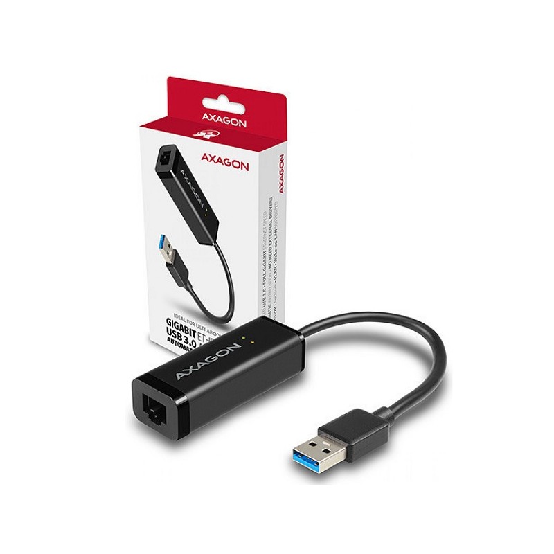 Kompaktní vysokorychlostní adapter AXAGON ADE-SR snadno přemění USB 3.0 port na Gigabit Ethernet 10/100/1000Mbit port.