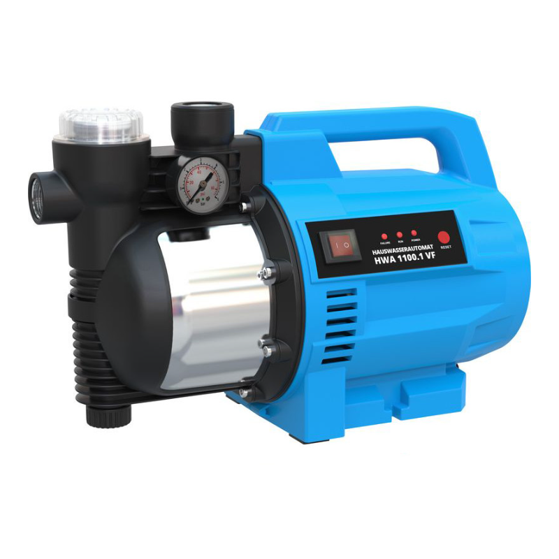 Vodný automat s telesom čerpadla z nárazu odolného plastu, obežné koleso z norylu, mechanické tesnenie, skrutka na vypúšťanie vody, vypínač, tepelná ochrana a spínač ochrany motora, automatický tlakový spínač s ochranou proti chodu nasucho. LED kontrolky prevádzky, integrovaný vodný filter. Pre automatický prívod vody, zavlažovanie domu, dvora a záhrady dažďovou vodou alebo podzemnou vodou, na dopravu vody zo studní a cisterien.Sieťové pripojenie: 220 - 240 VFrekvencia: 50 HzVýkon motora (P1): 1100 WDruh ochrany: IPX4Objem dodávaného množstva: 4600 l/h Maximálny výtlak: 46 mMaximálna sacia výška: 8 mMaximálna teplota vody: 35 °CPrípojný závit: 1" IGRozmery (DxŠxV): 480 x 220 x 300 mmHmotnosť netto/brutto: 11,1 kg/12,8 kg