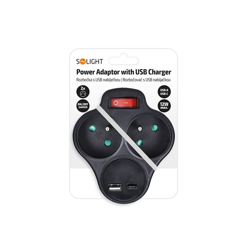 výstup 2 x 10A/230V =max. 16A USB nabíjací adaptér 2,4A max., USB výstupy 1x Typ-A + 1x Typ-C detská poistka farba: čierna vypínačRozbočka a USB nabíjačka v jednom Táto praktická rozbočka s integrovanou USB nabíjačkou je ideálne riešenie pre domácnosti, kde potrebujete pripojiť viacero zariadení na jednom mieste – napríklad televíziu, set-top box a tomu nabíjať telefóny alebo tablety. Podsvietený vypínač umožňuje ľahké vypnutie napájania všetkým zásuvkám aj USB portom naraz. Vhodná všade tam, kde chcete mať rýchlu kontrolu a prehľad. Vďaka kompaktnému prevedeniu nezaberie zbytočne miesto.Bezpečné a inteligentné riešenie pre elektrické spotrebiče Rozbočka s vypínačom sa hodí všade tam, kde je z bezpečnostných dôvodov vhodné prerušiť napájanie spotrebiča pri odchode alebo dlhšej prestávke v používaní. Dve zásuvky zvládnu celkovú záťaž až 3680 W a umožnia pripojiť akýkoľvek spotrebič v kuchyni, obývačke, spálni alebo dielni. Vďaka natočeniu horných zásuviek je možné ľahko manipulovať s USB káblami v spodnej zásuvke. Oba káble spotrebičov smerujú smerom dole a netrčia rôzne v priestore. Zásuvky sú navyše vybavené detskými poistkami, čo zaisťuje bezpečnú prevádzku aj v domácnostiach s deťmi. Vďaka USB-A a USB-C portom môžete pohodlne nabíjať aj dve zariadenia súčasne – s celkovým výkonom až 17 W. Perfektné pre všetku USB elektroniku.